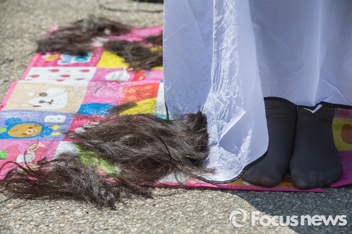 | △ 삭발식에 잘려나간 머리카락 |