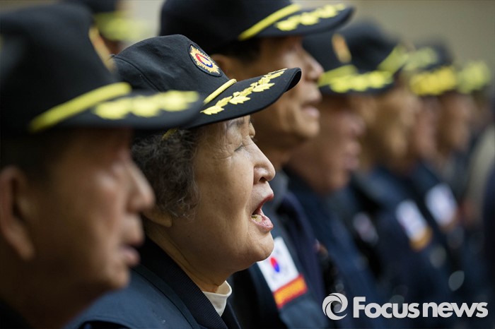 (서울=포커스뉴스) 11일 오전 서울 동작구 국립현충원에서 열린 '철기 이범석 장군 제44주기 추모제' 참석자들이 국민의례를 하고 있다.