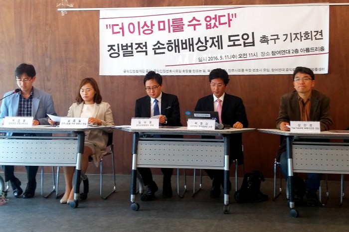 (서울=포커스뉴스) 참여연대, 민주사회를 위한 변호사 모임 등 6개 시민사회단체가 '징벌적 손해배상제도' 도입을 촉구하고 나섰다.