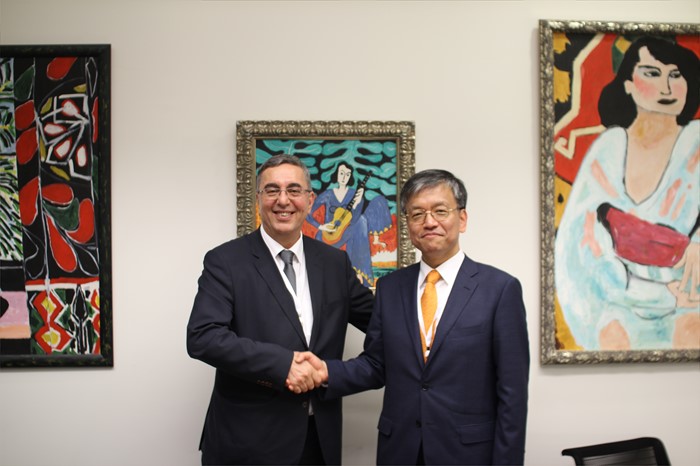 (서울=포커스뉴스) EBRD 연차총회 참석을 위해 런던을 방문 중인 최상목(오른쪽) 기획재정부 1차관이 카빗 다그다스 터키 재무차관과 경제 협력 강화 방안을 논의한 후 악수하고 있다. <사진제공=기획재정부>