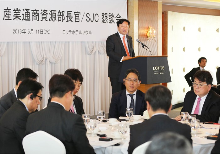 (서울=포커스뉴스) 주형환 산업통상자원부 장관이 11일 오후 서울 중구 소공동 롯데호텔에서 양국 기업간 투자분야 협력방안과 주한일본기업의 對정부 건의 해소방안 논의를 위해 열린 '서울재팬클럽(SJC) 오찬 간담회'에 참석해 인사말을 하고 있다.
