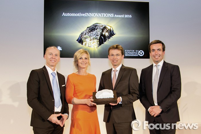 (서울=포커스뉴스) 폭스바겐이 11일(현지시간) 독일에서 열린 '2016 자동차 혁신상'에서 '가장 혁신적인 볼륨 브랜드'로 선정됐다.