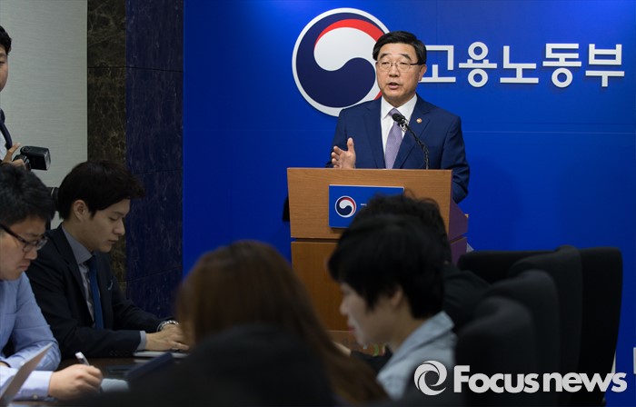 (세종=포커스뉴스) 이기권 고용노동부장관이 12일 오전 세종시 정부세종청사 고용노동부 기자실에서 임금체계 개편에 대한 브리핑을 하고 있다.