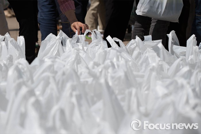 (서울=포커스뉴스) 12일 오후 서울시청 광장에서 열린 채소 모종 나눔행사에 참석한 시민들이 채소 모종이 담긴 봉지를 가져가고 있다.