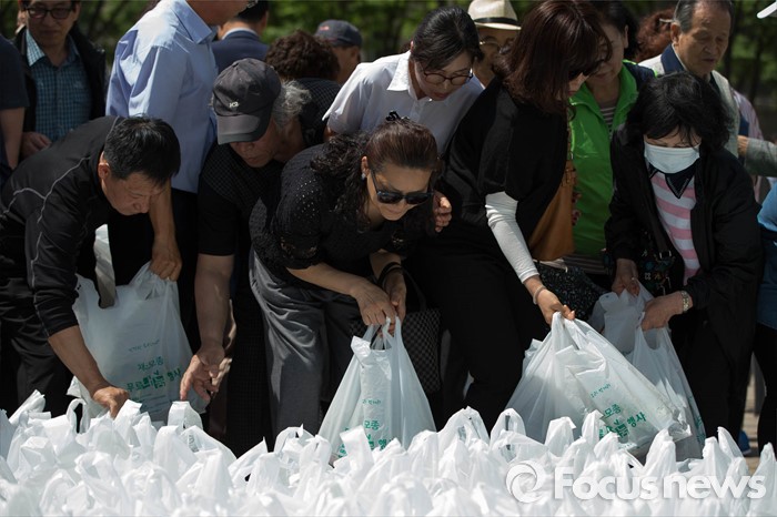 (서울=포커스뉴스) 12일 오후 서울시청 광장에서 열린 채소 모종 나눔행사에 참석한 시민들이 채소 모종이 담긴 봉지를 가져가고 있다.