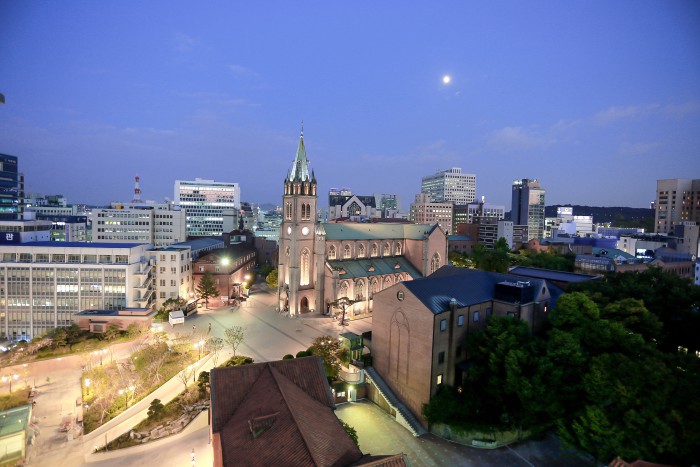 올해로 12회를 맞은 명동대성당 문화축제는 공연, 전시 등의 다양한 문화행사들을 통해 명동을 찾는 신자들과 일반인들의 도심 속 문화축제로 자리매김해왔다.서울 중구에 위치한 명동대성당 전경. <사진제공=서울대교구 명동대성당>