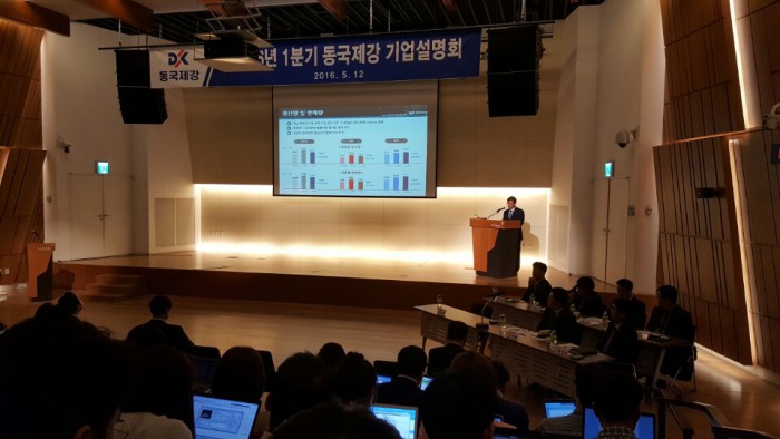동국제강은 12일 서울 중구 수하동 페럼타워에서 기업 설명회를 열고, 1분기 실적과 함께 2분기 전망에 대해 발표했다. 5년만에 열리는 IR로 이날 행사에는 150여명이 참여해 높은 관심을 나타냈다.