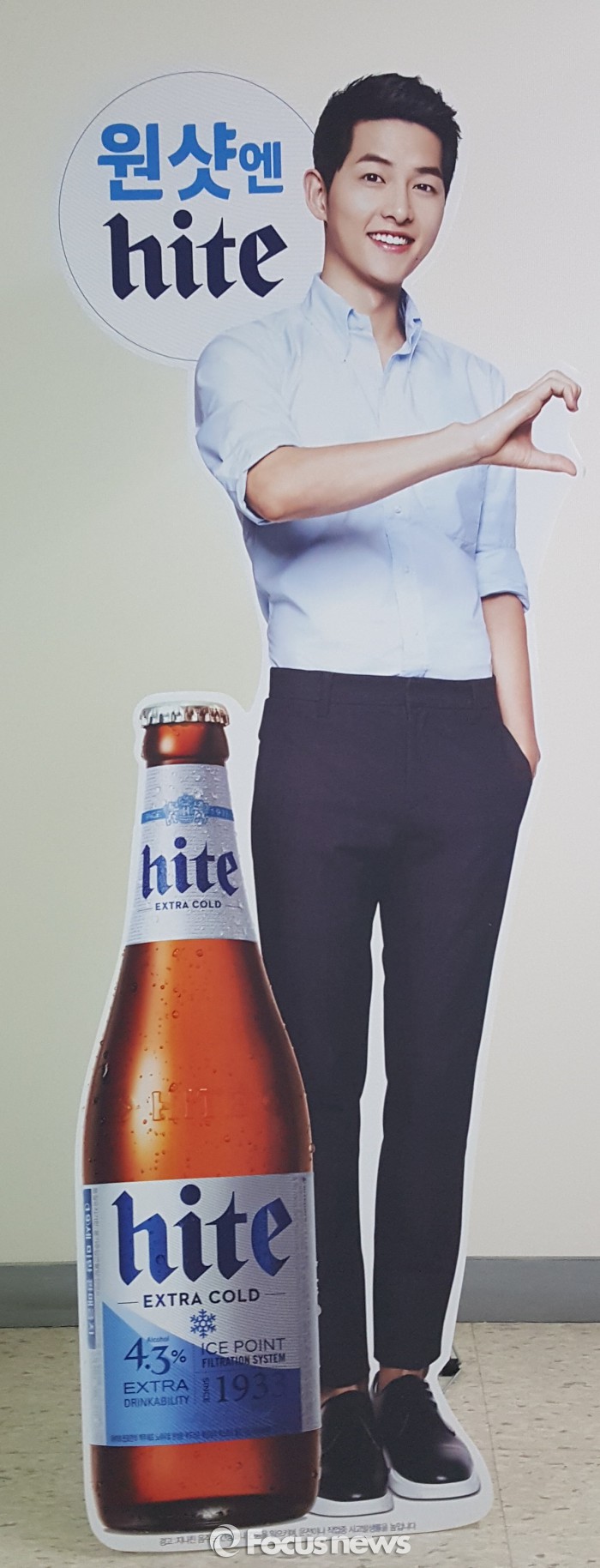 12일 주류 업계에 따르면, 당초 하이트진로는 올뉴하이트의 모델인 배우 송중기의 등신대를 8000여개 제작해 주요 업소에 배포했다.
