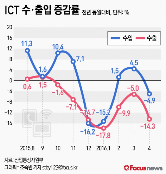 [그래픽] ICT 수·출입 증감률
