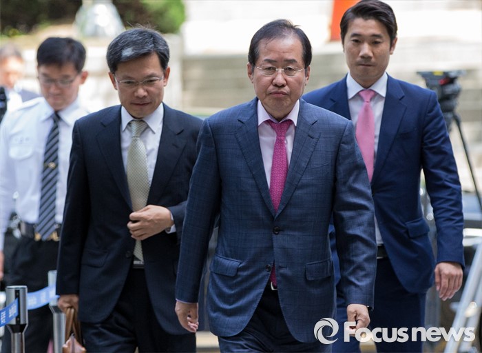 (서울=포커스뉴스) '성완종 리스트'로 논란이 된 홍준표 경남도지사가 정치자금법 위반 혐의에 대한 속행공판에 출석하기 위해 13일 오전 서울중앙지법으로 들어서고 있다.