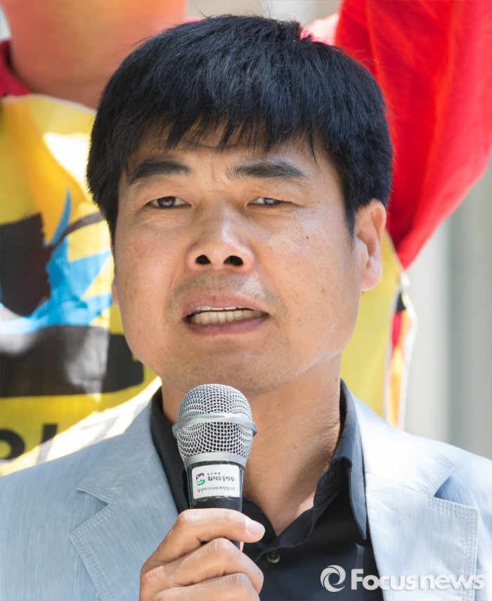 (서울=포커스뉴스) 13일 오후 서울 종로구 정부서울청사 후문에서 열린 '윤성규 환경부 장관 해임을 요구하는 가습기 살균제 피해자와 시민사회단체 기자회견'에서 염형철 환경운동연합 사무총장이 규탄발언을 하고 있다.
