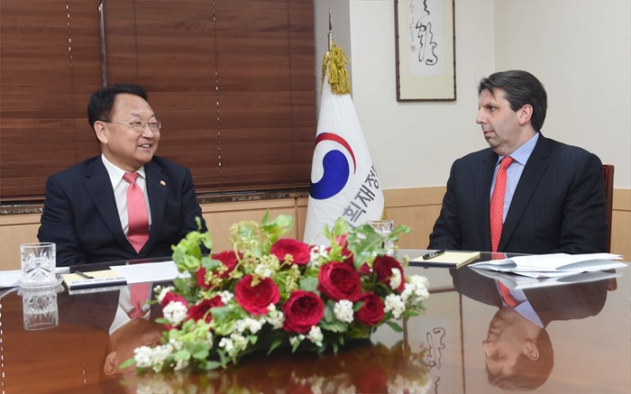 | △ 면담하는 유일호 부총리와 마크리퍼트 주한미국대사 |