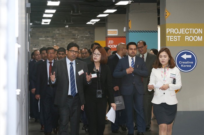 (서울=포커스뉴스) 문화체육관광부는 한국콘텐츠진흥원과 함께 13일 서울 청계천로 문화창조벤처단지 비즈센터에서 한국-방글라데시 게임 및 정보통신기술(ICT) 콘텐츠 기업 교류회를 개최했다. 이날 주나이드 아흐메드 펄럭(H.E. Mr. Zunaid Ahmed Palak) 방글라데시 정보통신기술부 국무장관과 동행하여 방문한 방글라데시의 게임 및 정보통신기술 기업 대표단이 문화창조벤처단지를 둘러보고 있다. <사진제공 문화체육관광부>