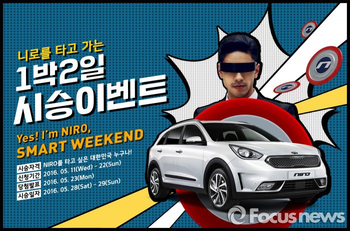 (서울=포커스뉴스) 기아자동차는 28일부터 1박2일 동안 친환경 소형 SUV '니로'의 고객 시승 이벤트를 진행한다.