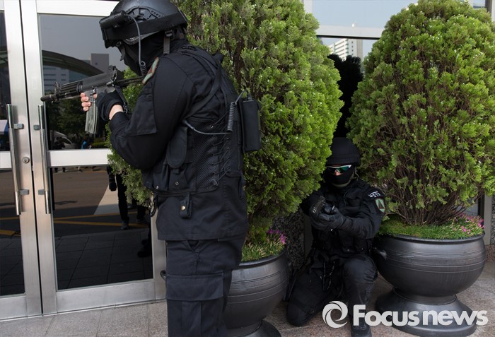 (서울=포커스뉴스) 17일 오후 서울 서초구 JW메리어트호텔 서울에서 민·관·군 관계자들이 2016 재난대응 안전한국훈련을 하고 있다.