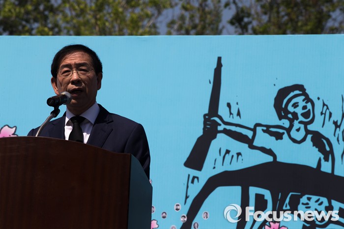 (서울=포커스뉴스) 18일 오전 서울 중구 서울시청 앞 광장에서 열린 5.18 민주화운동 기념식에 박원순 서울시장이 참석, 기념사를 하기 위해 단상에 오르고 있다.