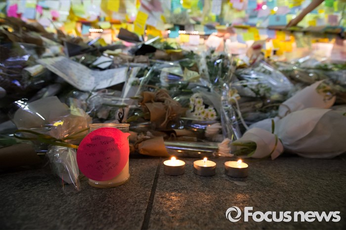 (서울=포커스뉴스) 19일 오후 서울 서초구 강남역 10번출구에서 시민들이 '강남 묻지마 살인' 피해자를 추모하고 있다.