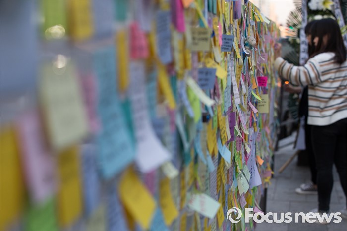 (서울=포커스뉴스) 19일 오후 서울 서초구 강남역 10번출구에서 시민들이 '강남 묻지마 살인' 피해자를 추모하고 있다.