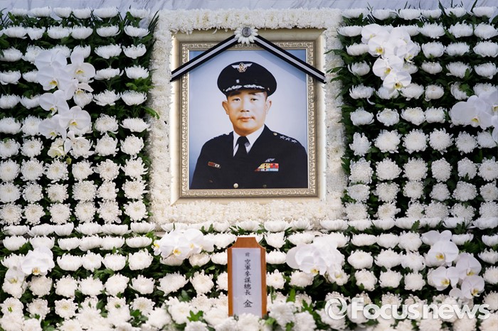 (서울=포커스뉴스) 백범 김구 선생의 아들인 김신 전 공군참모총장이 지난 19일 향년 94세로 별세했다. 20일 오전 서울 서대문구 신촌세브란스병원 장례식장에 마련된 고인의 빈소.