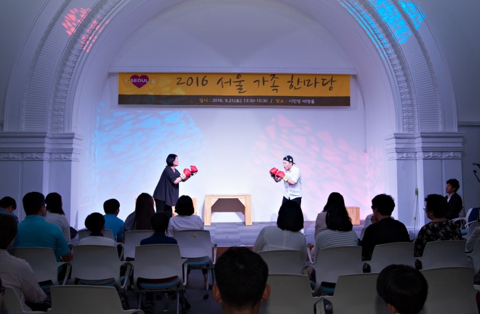 (서울=포커스뉴스) 오비맥주는 지난 21일 서울시와 서울건강가정지원센터가 시민청 태평홀에서 개최한 '2016 서울 가족한마당' 행사에 후원사로 참가, 건전음주 연극 캠페인 '패밀리토크'를 성황리에 상연했다고 22일 밝혔다.
