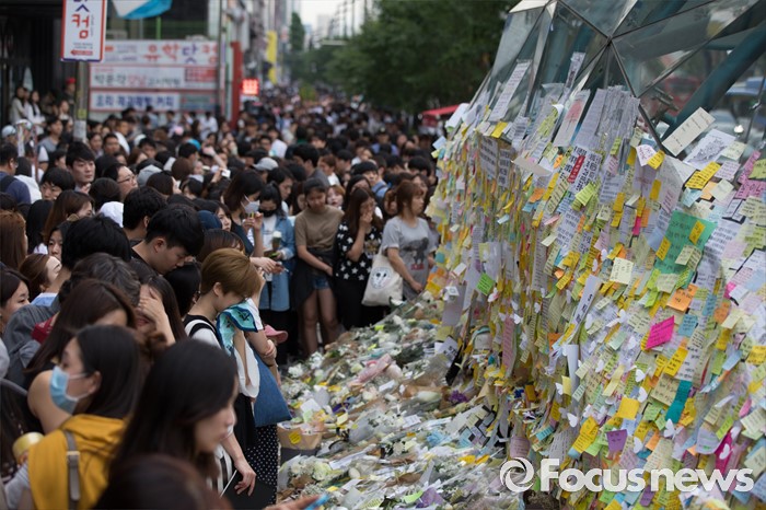 (서울=포커스뉴스) 서울 서초구 강남역 근처 노래방 화장실에서 일면식도 없었던 피의자 김씨(34)씨에게 흉기에 찔려 살해된 직장인 A씨(23·여)씨를 추모하기 위해시민들이 자발적으로 붙였던 쪽지들이 모두 철거됐다.