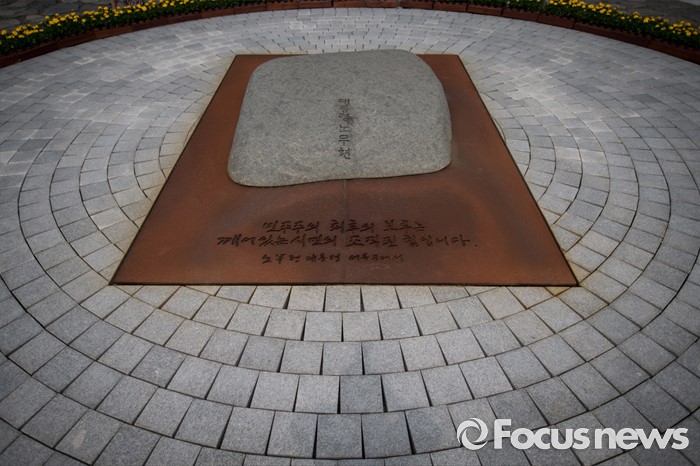 (김해=포커스뉴스)故 노무현 전 대통령 서거 7주기인 23일 오후 경남 김해시 진영읍 봉하마을에서 열린 '故 노무현 전 대통령 서거 7주기 추도식'에서 대통령 노무현이라고 적힌'너럭바위'가 자리를 지키고 있다.