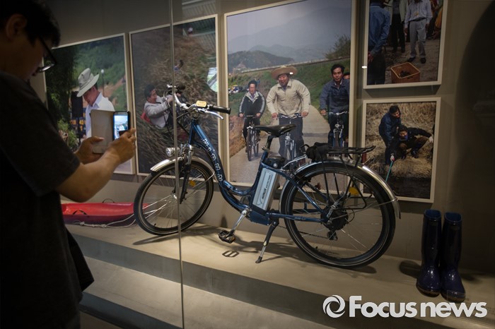 (김해=포커스뉴스)故 노무현 전 대통령 서거 7주기인 23일 오후 경남 김해시 진영읍 봉하마을 '추모의 집'에 노무현 전 대통령이 타고 다니던 자전거가 전시되어 있다.