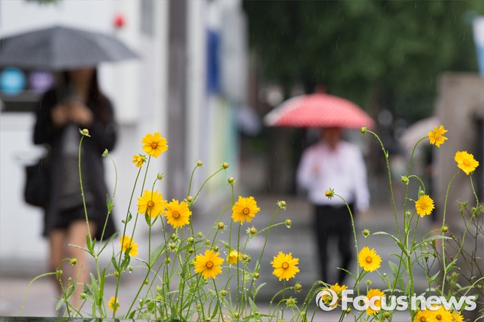 (서울=포커스뉴스) 전국이 흐리고 비가 내리는 24일 오전 서울 마포구 공덕역 인근 거리에서 시민들이 우산을 쓰고 지나가고 있다.