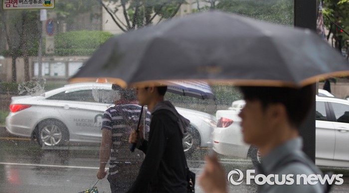 (서울=포커스뉴스) 전국이 흐리고 비가 내리는 24일 오전 서울 강남구 강남역 인근에서 시민들이 발걸음을 재촉하고 있다.