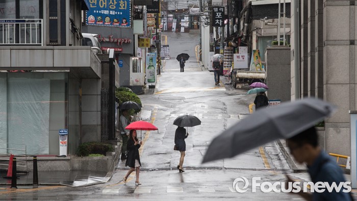 (서울=포커스뉴스) 전국이 흐리고 비가 내리는 24일 오전 서울 강남구 강남역 인근에서 시민들이 발걸음을 재촉하고 있다.