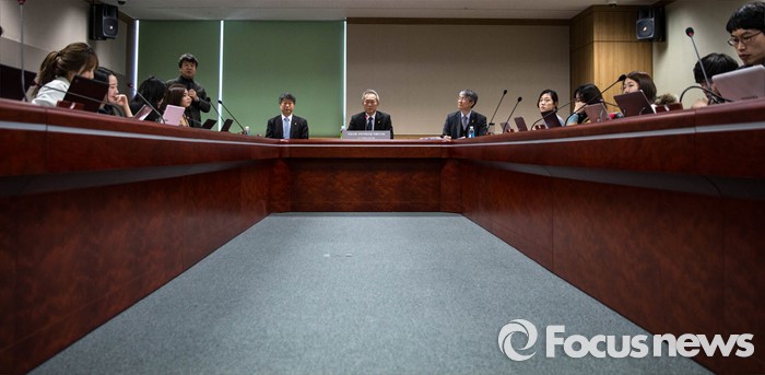 한편 특조위는 "세월호 선체 인양작업 중 선체에서 절단된 구조물 등이 목포 신항만 철재부두에 방치돼 있는 상태"라며 "이와 관련해 해수부에서는 별도 관리계획이 없으며 '세월호 인양선체 정리용역' 사업이 시작된 후에 관리가 추진될 것이라고 설명했다"고 밝혔다.(서울=포커스뉴스) 2월 17일 오전 서울 중구에 위치한 세월호 특별조사위원회에서 열린 기자간담회에서 이석태 세월호 특조위 위원장이 간담회 시작을 기다리고 있다. 2016.02.17 성동훈 기자