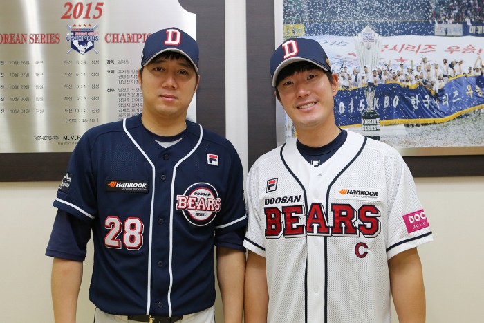넥센타이어도 11년째 스피드레이싱 대회인 엔페라컵에 메인 스폰서를 맡으며, 모터스포츠에서의 홍보활동을 이어나가는 모습이다.한국타이어 로고가 부착된 유니폼을 입은 두산베어스와 (좌) 장원준, (우) 김재호 선수 <사진제공=한국타이어> 2016.04.28 송상현 기자 <사진제공=넥센타이어>