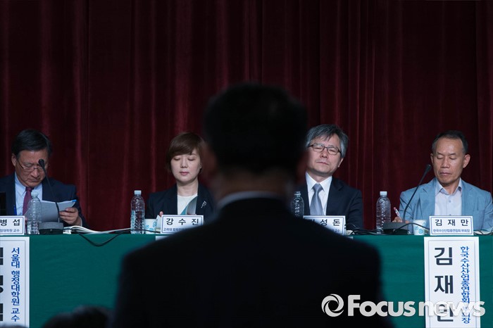 (서울=포커스뉴스) 24일 오후 서울 중구 포스트타워에서 열린 부정청탁 및 금품 등 수수 금지에 관한 법률(일명 김영란법) 입법예고안에 대한 공청회에 참석한 시민들이 질문하고 있다.