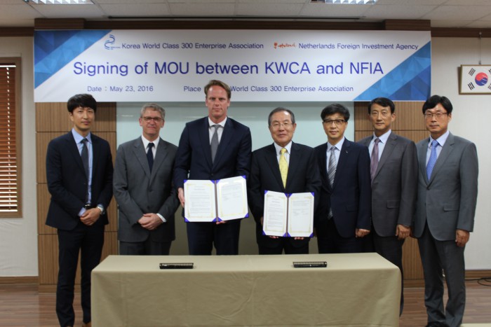 전날 서울 서초동 WC300기업협회 사무실에서 진행된 체결식에는 네덜란드의 로디 엠브레흐츠 대사와 네덜란드 투자진흥청 아나우트 베셀링 주한대표, 서은규 투자담당 선임상무관, WC300기업협회 윤동한 회장, 한국산업기술진흥원 중견기업단 오한석 단장, 홍봉표 사무국장 등이 참석했다.