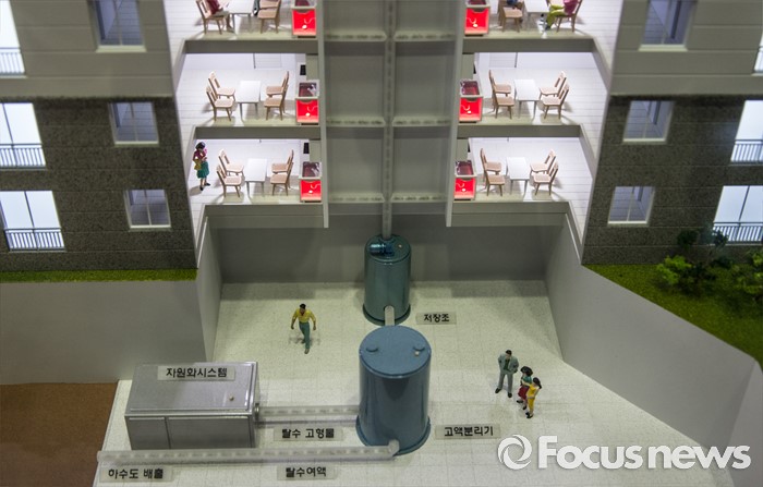 (서울=포커스뉴스) 25일 오전 서울 강남구 코엑스에서 열린 국토교통부 주최'2016 국토교통기술대전'에 전시된 음식물 쓰래기를 재가공해 도시농부 텃밫에 활용하는 과정을 설명한 모형도.