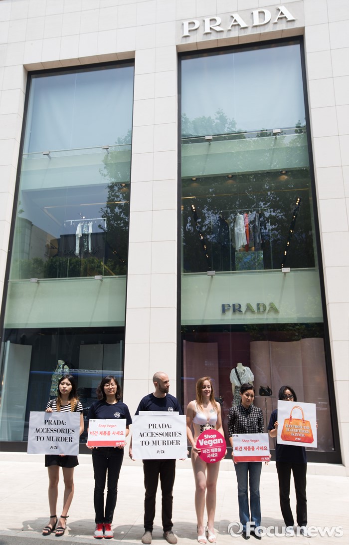 | △ 프라다 매장 앞 타조 가방 반대 퍼포먼스 |