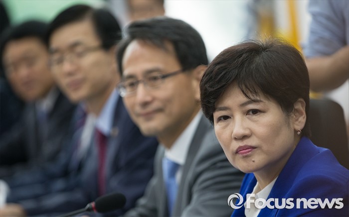 (서울=포커스뉴스) 강은희(오른쪽) 여성가족부 장관이 26일 오전 서울 여의도 국회에서 열린 여성안전대책간담회에 참석하고 있다.