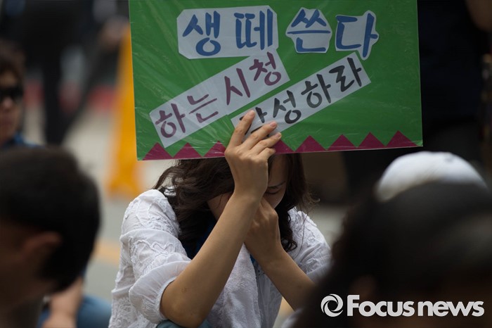 (서울=포커스뉴스) 26일 오전 서울시청 정문앞에서 전국장애인 부모연대와 서울특수학교학부모협의회원들이 발달장애인 정책 수립을 촉구하며 기자회견을 하고 있다.