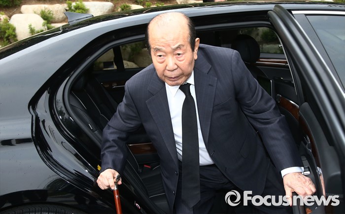(서울=포커스뉴스) 김수한 전 국회의장이 26일 오후 서울 동작구 국립서울현충원에서 열린 고 김영삼 전 대통령 묘비 제막식에 참석하고 있다.