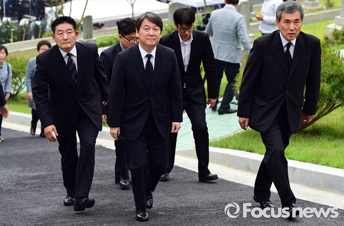 (서울=포커스뉴스) 안철수 국민의당 상임공동대표가 26일 서울 동작구 국립서울현충원에서 열린 김영삼 전 대통령 묘비 제막식에 참석하고 있다.