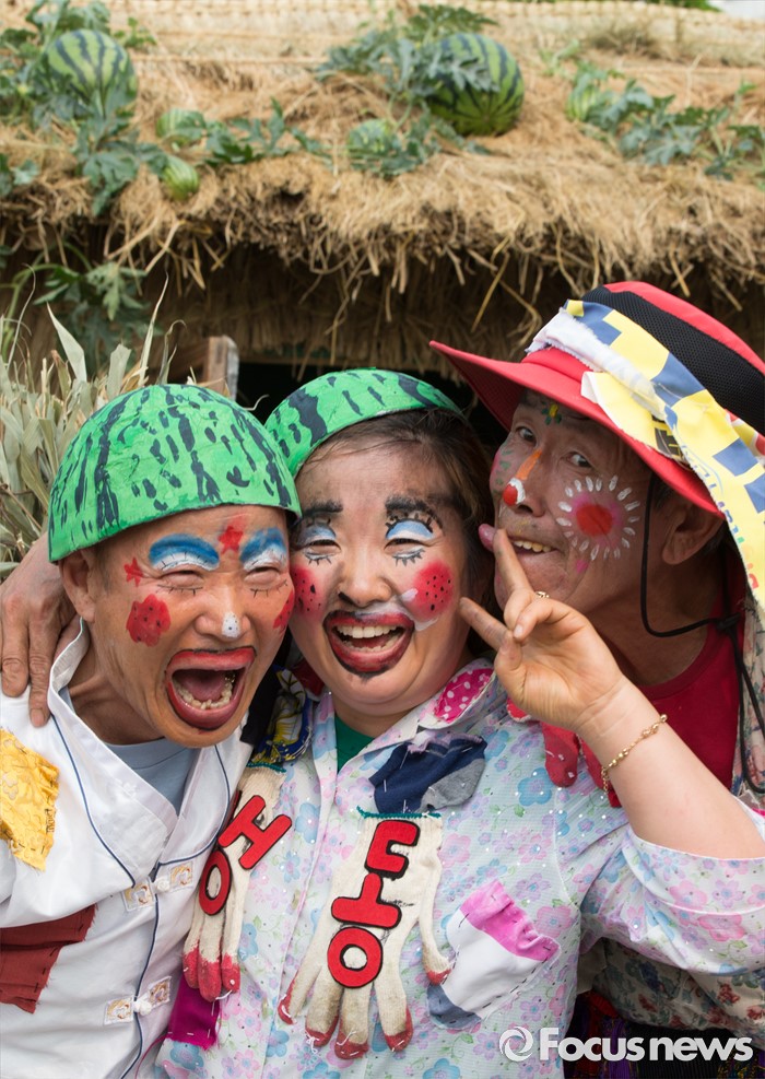 (음성=포커스뉴스) 26일 충북 음성군 음성읍 설성공원 일원에서 제17회 음성 품바축제가 열린 가운데 행사장 내 마련된 품바촌에서 품바분장을 한 참가자가 익살스런 표정으로 사진촬영을 하고 있다.