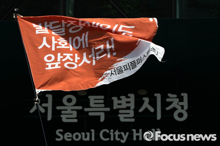 (서울=포커스뉴스)27일 오전 서울 중구 서울시청 앞에서 전국 장애인 부모연대와 서울특수학교학부모협의회 회원들이 발달장애인 정책 수립을 촉구하는 삭발식이 열리고 있다.