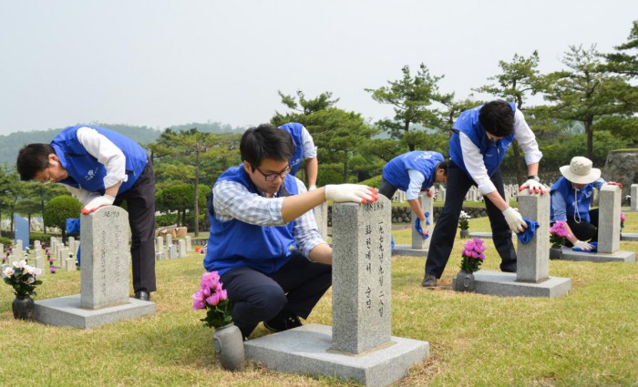 효성 직원들은 이 곳에서 헌화와 묘비닦기, 잡초 제거 등 묘역 정화활동을 펼치고, 순국선열들의 숭고한 희생을 기리며 애국정신을 되새겼다.