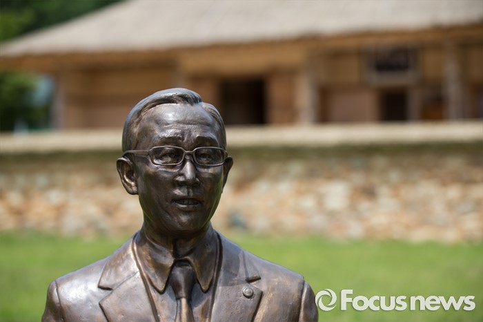 (음성=포커스뉴스) 27일 오후 충북 음성군 원남면 반기문 UN사무총장 생가 앞에 설치된 동상.