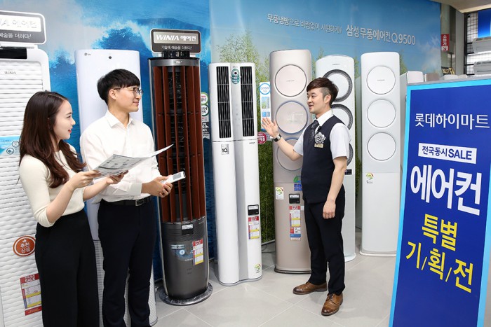 롯데하이마트 대치점 하택영 지점장은 "갑자기 찾아온 무더위에 여름 가전에 대한 수요가 급증하고 있다"며 "방문고객 3명 가운데 2명은 에어컨, 선풍기 등 냉방 가전을 문의한다"고 말했다.