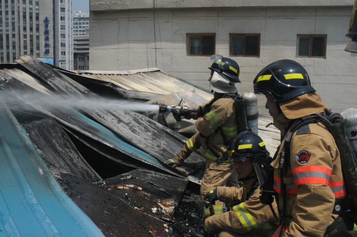 소방당국은 현재 정확한 화재 원인을 조사 중이다.29일 오후 서울 중구 필동에 위치한 건물에서 불이 나 소방대원들이 진화에 나섰다. <사진제공=서울 중부소방서>