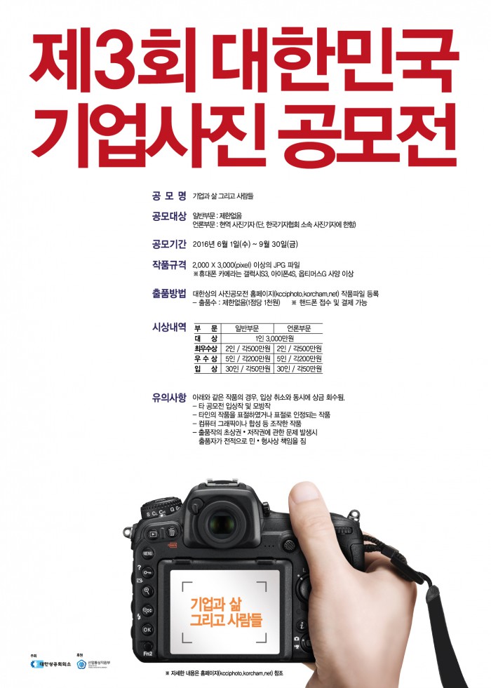 대한상의 관계자는 “한 장의 사진이 기업과 근로에 대한 우리의 인식을 크게 바꿔놓을 수 있다”며 “근로자의 하루, 대한민국의 오늘이 담긴 진정성 있는 작품들이 많이 접수되길 바란다”고 말했다.