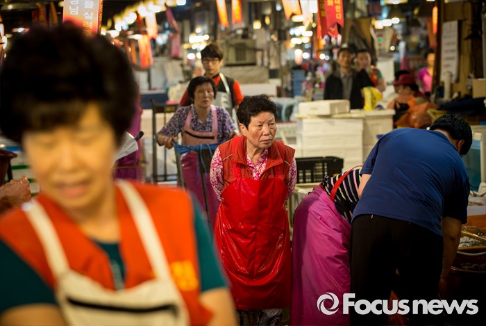 (서울=포커스뉴스) 30일 오전 서울 동작구 구 노량진수산시장에서 서울중앙지법 관계자들이 법원의 점유이전금지가처분을 집행한 가운데 상인들이 굳은 표정을 짓고 있다. 법원은 이날 영업은 지속하되 수협의 동의없이 가게를 타인에게 이전·전대하면 안된다고 상인들에게 통보 했다.