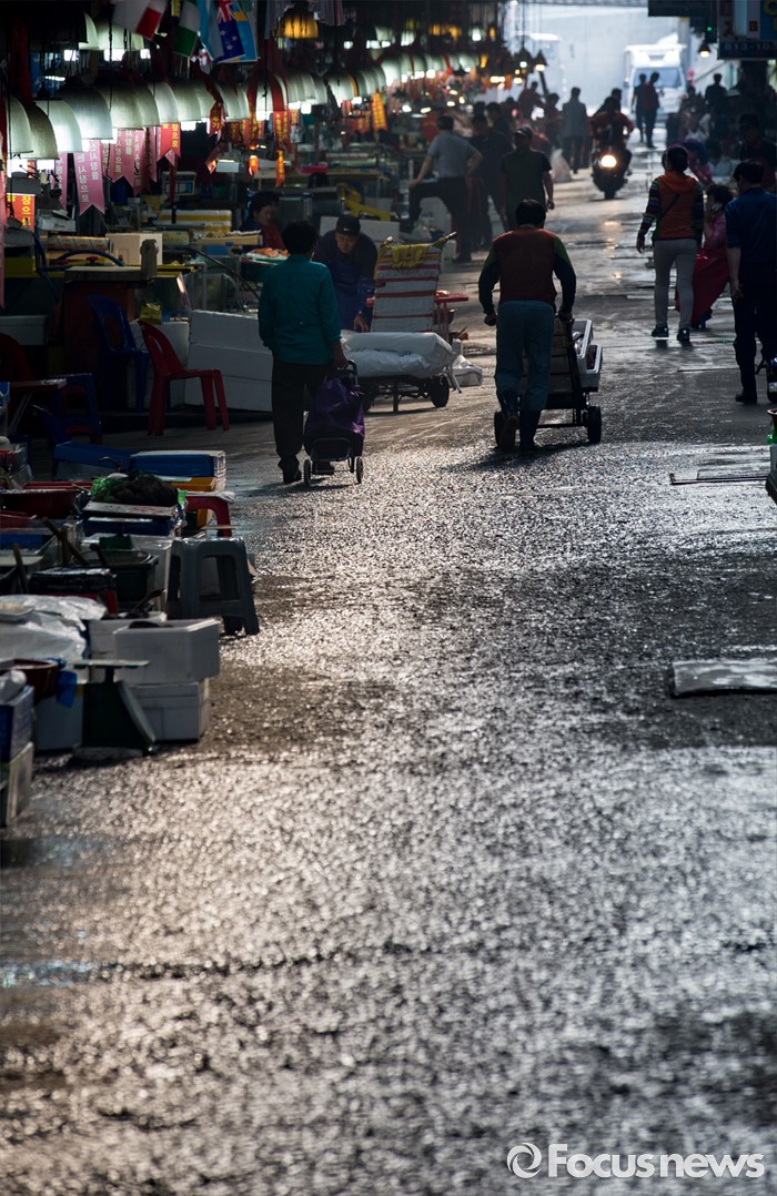 (서울=포커스뉴스) 30일 오전 서울 동작구 구 노량진수산시장에서 서울중앙지법 관계자들이 법원의 점유이전금지가처분을 집행한 가운데 상인들이 영업을 이어가고 있다. 법원은 이날 영업은 지속하되 수협의 동의없이 가게를 타인에게 이전·전대하면 안된다고 상인들에게 통보 했다.
