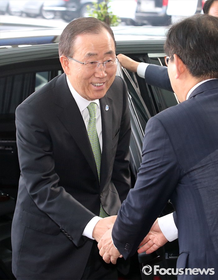 (인천공항=포커스뉴스) 방한 일정을 마친 반기문 유엔사무총장이 30일 오후 출국을 위해 인천국제공항에 도착, 관계자들의 영접을 받고 있다.